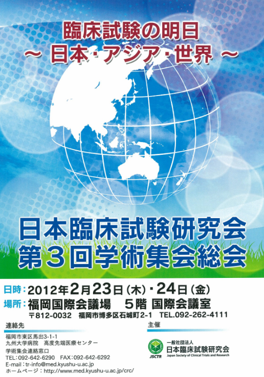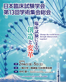 | テーマ | 未来の医療と社会への貢献を考える-ボーダレス! 臨床試験の可能性を信じて- Borderless ! Discuss contributions to our future Medicine and Society. |